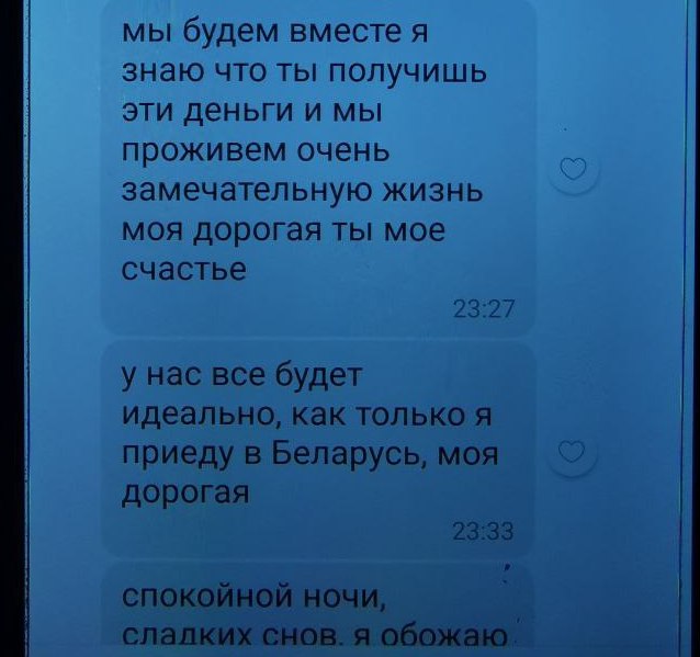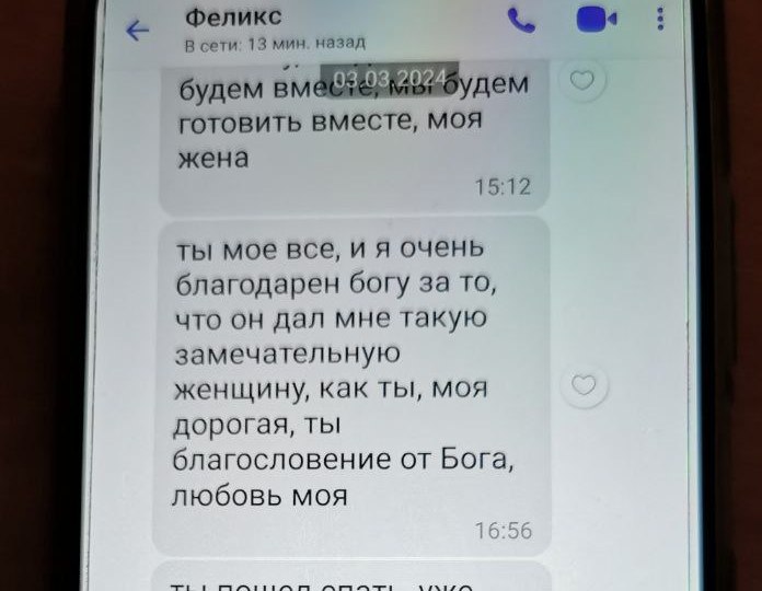 Летом 2023 года ей в социальной сети написал незнакомец, который представился военным хирургом и предложил познакомиться. Общение продолжилось в мессенджере, где мужчина по имени «Феликс» неоднократно признавался в любви и обещал приехать.